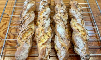 3月のパンクラスはクアトロツイスト 4個アーモンドとカシューナッツを混ぜ込んだ生地に、クリームチーズとカマンベールチーズを巻き込んで、2つ編みにして焼き上げたパンです!粗挽き黒こしょうがアクセントになって、お酒のお供にもピッタリです✨👛レッスン費用:4…
